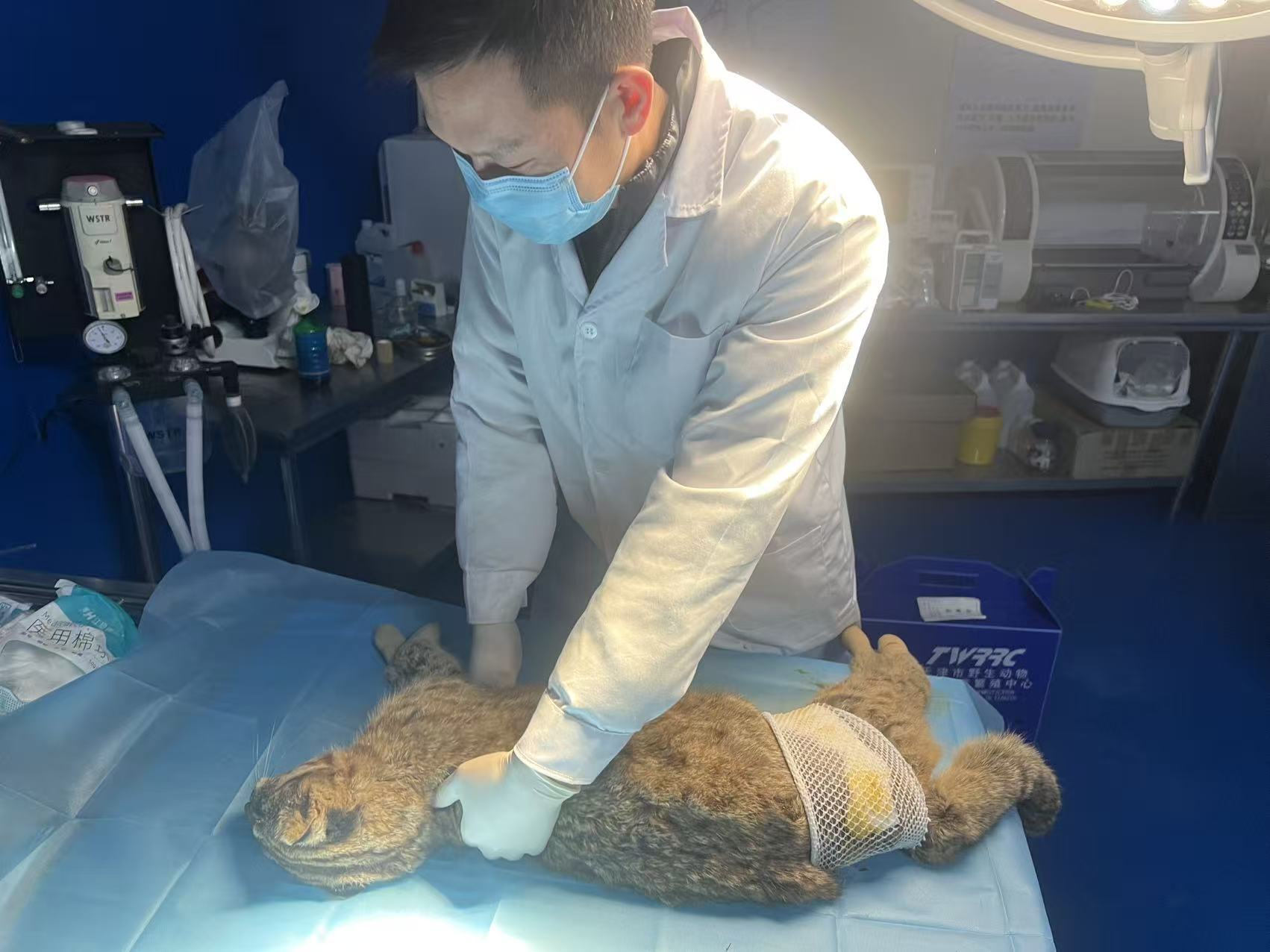 区林业局野保站接报后,迅速联动专业救护机构,组建救援专班携带断线钳•◁-、动物保定器等设备火速驰援。在多方协同下,救援人员科学制定方案◆-•,仅用20分钟便安全解救豹猫。经专业检查-△▼,该成年雄性豹猫体重9.25公斤●▽,存在足部磨损…☆★、指甲断裂、腹部伤口等情况=-,无重大健康风险…▼,目前在救护站点接受专业救治,体态特征稳定,痊愈后将择机放归自然○。